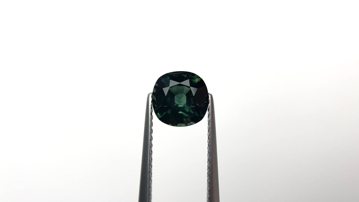 The Stone | In natural light this gorgeous sapphire leans forest-green with ocean-blue undertones, while under warm light it may appear slightly darker, almost midnight teal.