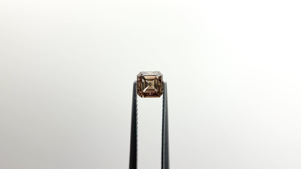 • Set with a lovely little 1ct square step cut champagne diamond
