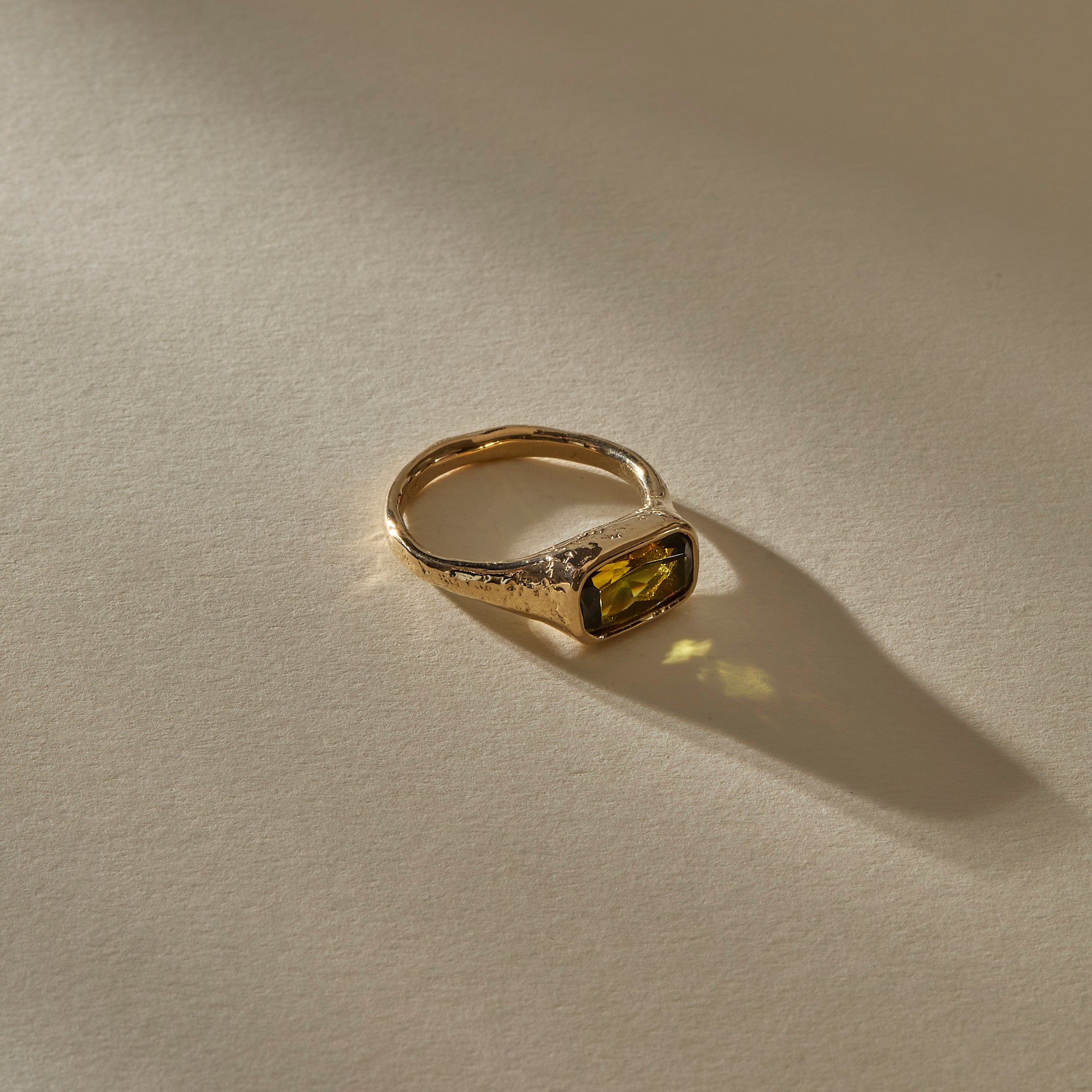 A beautiful yet unique & subtle statement. This the second of our small batch release green tourmaline rings, a one-of-a-kind piece, handmade with love and ready to ship.