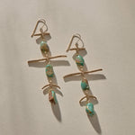 Luxurious, rustic and meticulously handcrafted, the Petra Earrings adorn the body with a bold graceful flourish. An ode to the Divine Feminine, these draping pieces combine vibrant turquoise stones with flowing bronze speckled branches that spread like the wings of ancient birds.
