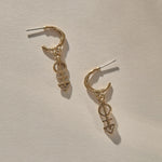 Created as talismans of empowerment, these earrings carry the ancient symbolism of cosmic balance and elemental magic. The charm weaves together the alchemical symbols of earth, water, fire, and spirit, grounding intention while opening space for transformation.